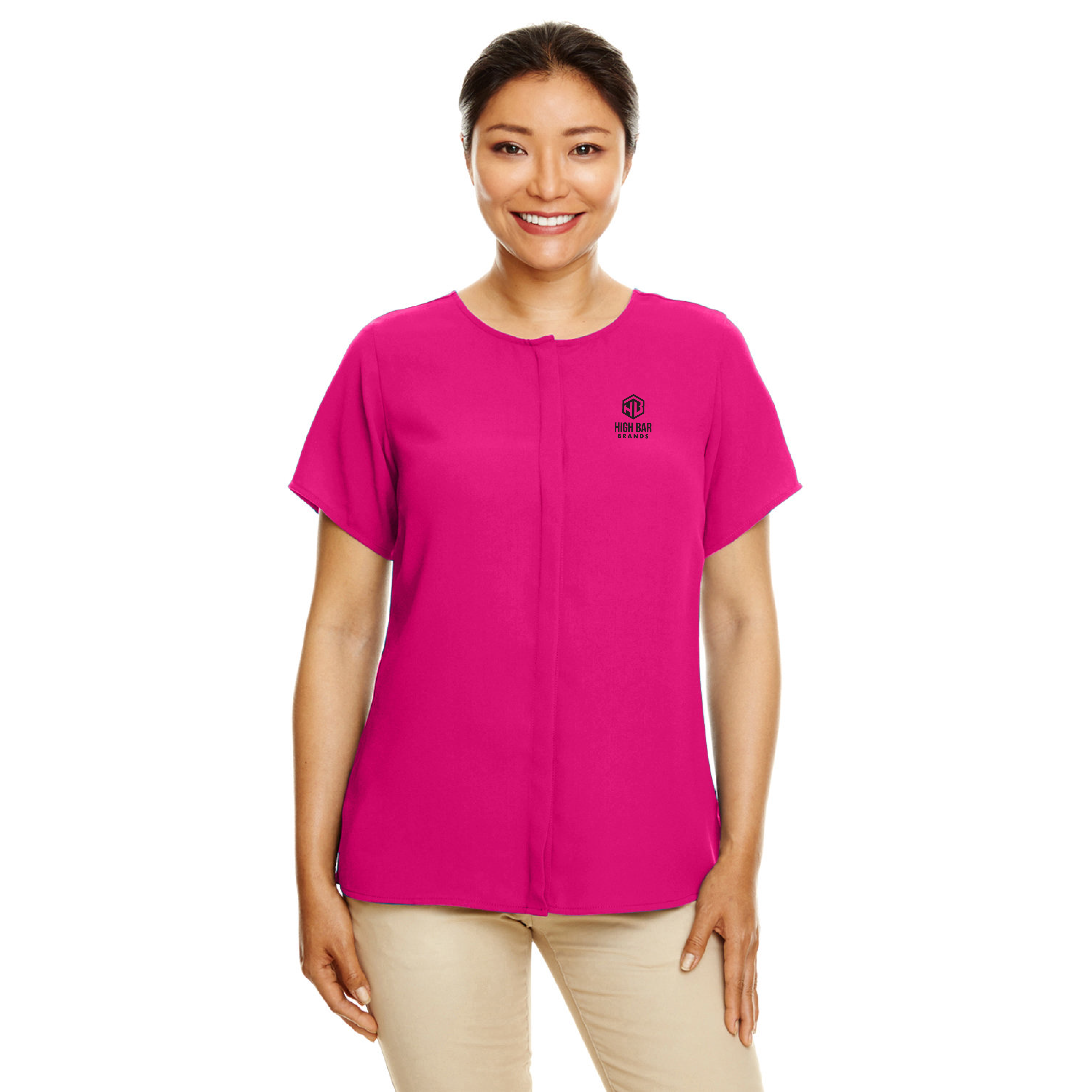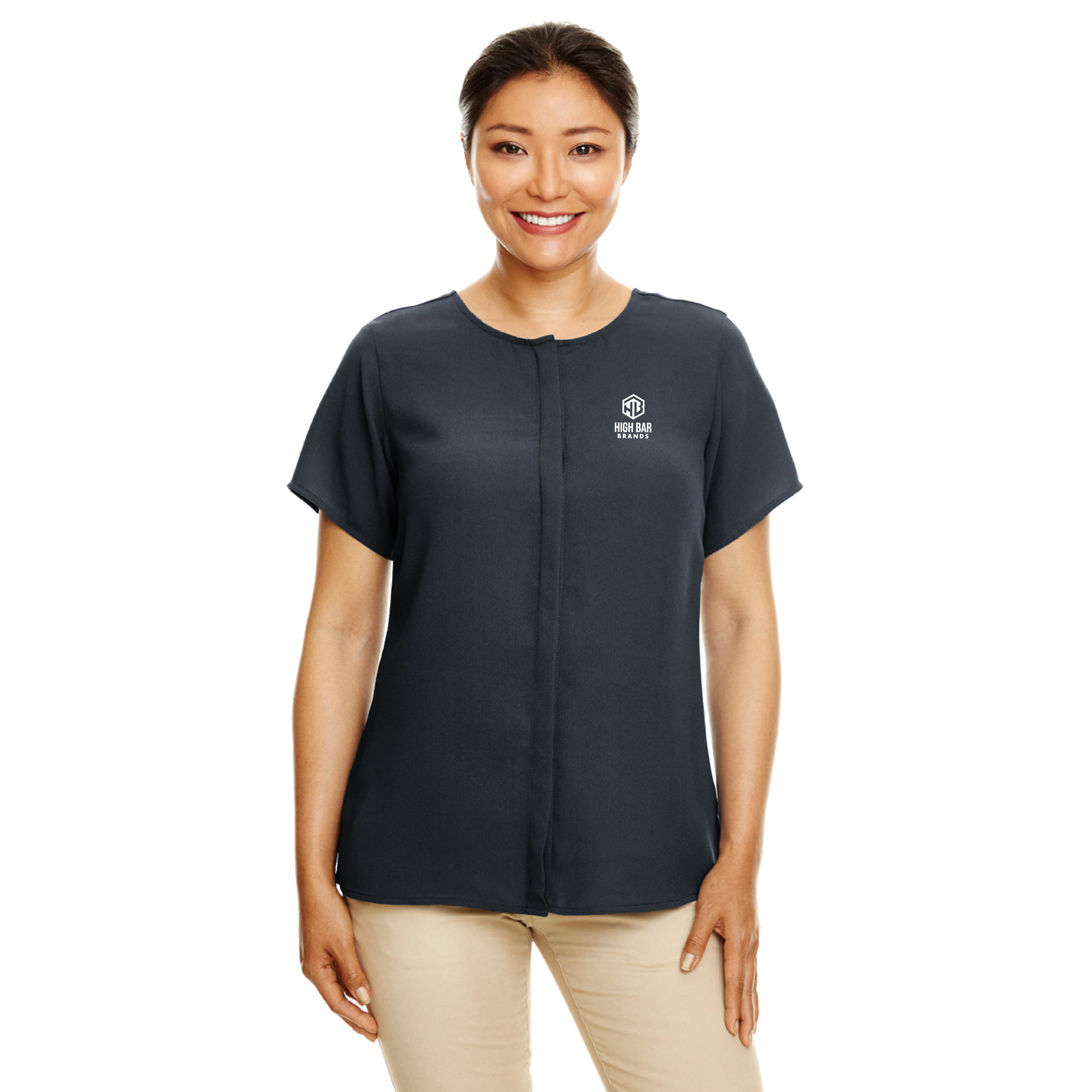 - hidden center front placket with dyed-to-match buttons